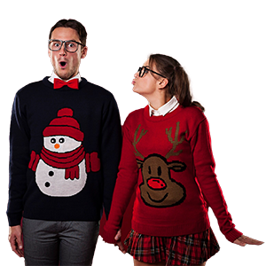 Exakt hur det klassiska plagget med fula jultröjor (Ugly Christmas Sweaters) uppstod är något oklart, men att bära stickat med färgglada och stora motiv är en del av det amerikanska julfirandet.